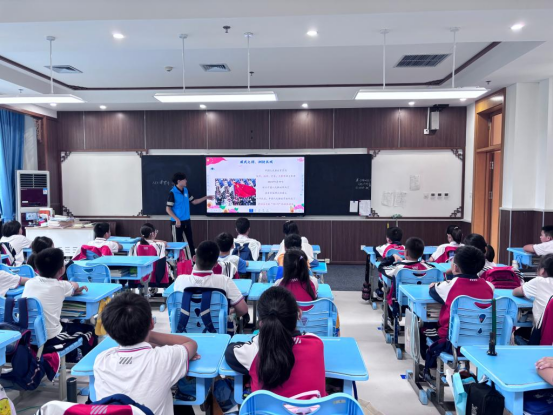 为弘扬爱国主义精神,践行志愿服务理念,9月22日,商务外语系组织40名学生志愿者走进青岛崇礼小学,成功举办了“星星火炬,代代相传”启蒙讲堂宣讲活动,并协助该校开展了小学生体质健康测试。