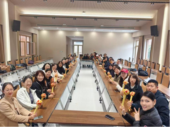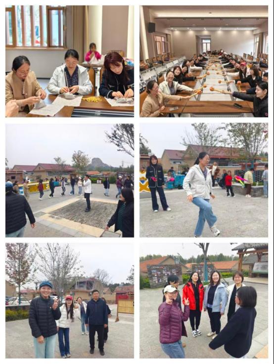 首先,老师们来到了艾山采摘园,通过果农讲解,对园区的特色鲜果和种植特点有了更深入的了解,亲手采摘着颗颗饱满的苹果和葡萄,享受着田园采摘的乐趣。随后,大家来到乡道培训书院进行艾草锤手工制作,手工艺人为大家进行现场教学,老师们纷纷动手,将传统与创新相结合,精心制作出了一个个造型独特、功能实用的艾草锤。之后,大家跟随当地向导步伐,漫步村庄,了解了乡村振兴示范片区的整体规划、文旅资源开发利用等情况,通过实地走访感受到乡村振兴示范片区建设带来的巨大变化。随后,大家分组参与了丰富多彩的趣味团建活动,活动设置了踢毽子、桃花朵朵开、棋牌竞赛等多个团队合作项目,老师们在活动中默契配合、积极协作,充分彰显了团队精神。