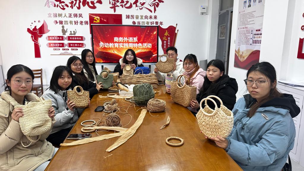 为深入践行劳动教育理念,传承中华优秀传统文化,感悟匠心技艺中蕴含的劳动精神,12月4日下午,商务外语系在劳动教育周期间组织开展了“指间草编·非遗传承”特色实践活动。系部劳动周轮值班级学生代表积极参与,亲身体验草编技艺的魅力与匠心。