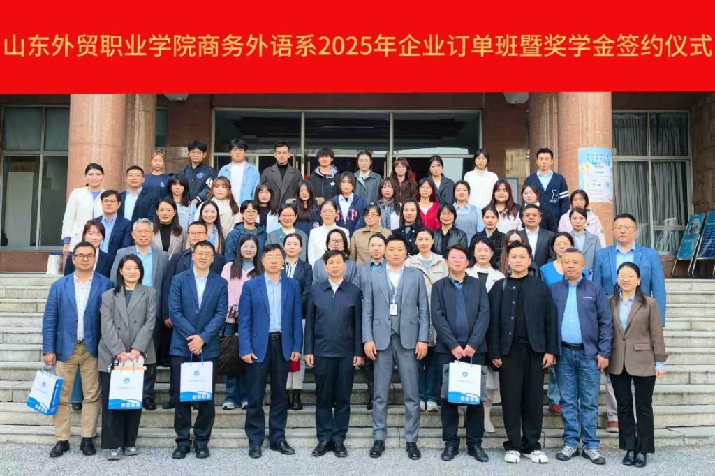11月13日下午,商务外语系在1号教学楼3阶举行2025年企业订单班暨奖学金签约仪式。学院副院长谷现海、校企合作办公室主任王金光、商务外语系党政负责人及10家合作企业代表共同出席,仪式由商务外语系主任王应喜主持。